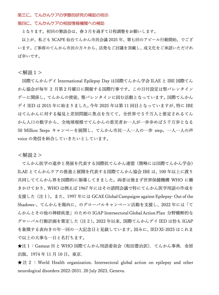 仙台てんかん市民会議SCAPE(国際てんかんデイIED)からの 宮城県政・仙台市政へアピール行動2025年懇話会